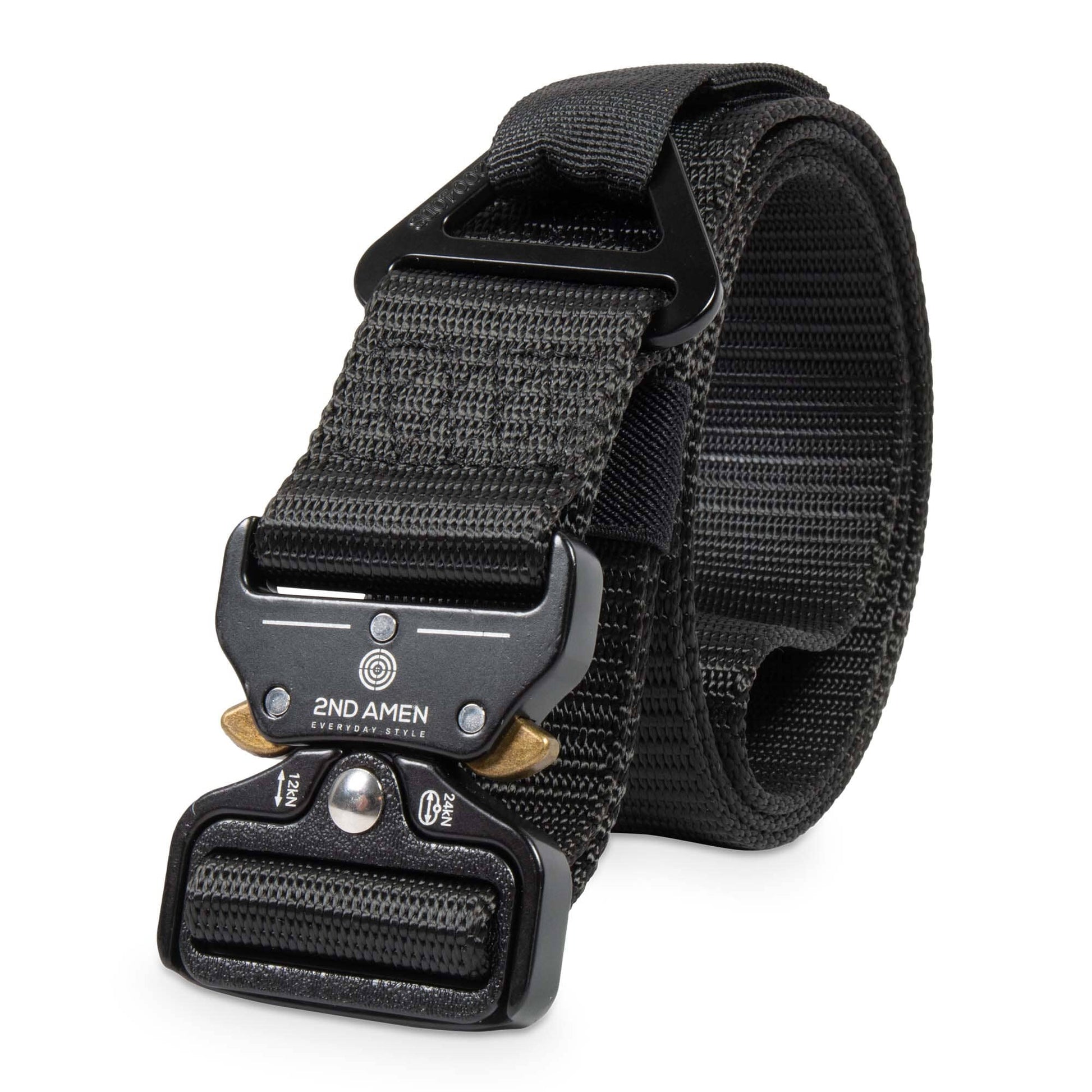 2ND AMEN 1.5" Tactical EDC Belt with Nylon Webbing. Quick Release Technology and Durable V-ring, Black.