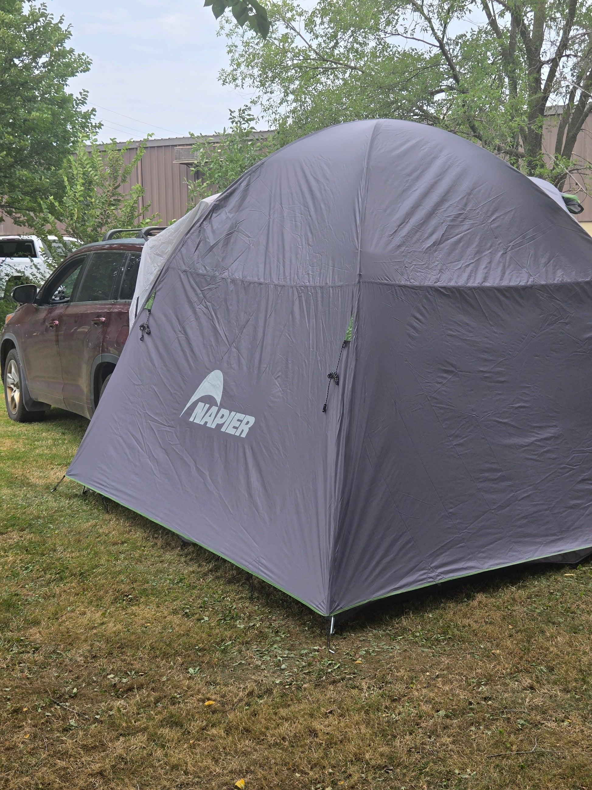 Unpack fun, not gear! With the Backroadz SUV Tent, you’ll spend less time unpacking and more time making memories. The universal vehicle sleeve connects effortlessly to your SUV or minivan’s liftgate, providing secure access to your vehicle from inside the tent. Enjoy the convenience of having your gear within arm’s reach while maximizing the 10’ x 10’ tent space for friends and family. Whether you're family camping, taking a road trip, or looking for a long-weekend getaway, the Backroadz SUV Tent has you covered, this is car camping-upgraded. Plus, help protect the places you love, one tent at a time. With every purchase of a Backroadz Tent, Napier plants a tree 🌲