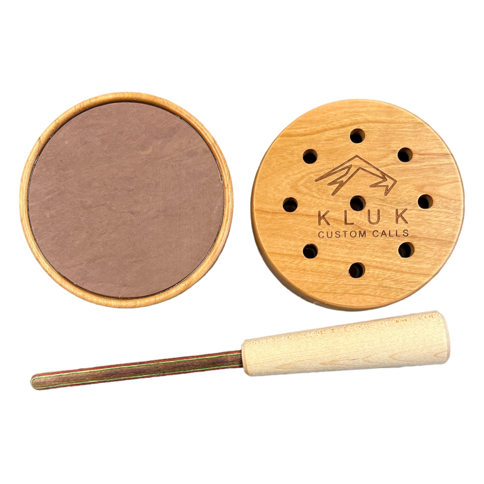 The CHERRY/ RED SLATE pot call is perfect for the beginner all the way up to the most experienced callers. The Red slate surface is perfect for tree yelps, soft yelping, purrs, and aggressive raspy yelps. This call is effortless to use and the red slate surface is very responsive. You can't go wrong pairing this call with a two piece dymondwood striker. The OLE’ TOM won't be able to resist the sweet sounds this call produces!