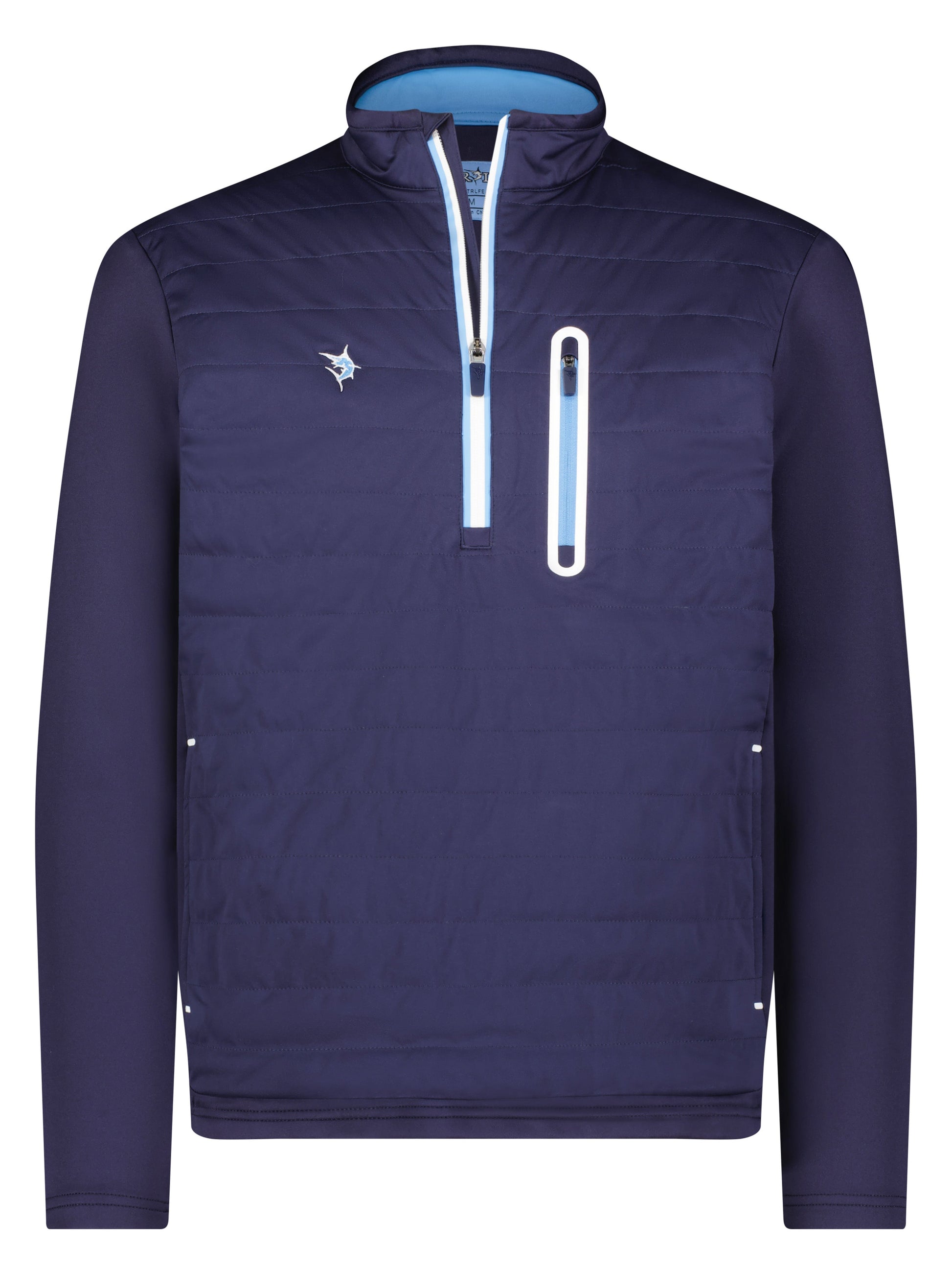 Style meets functionality. The front side offers water resistant fabric and the sleeves and backside is constructed with our scuba fabric. This offers protection from the elements, function for activity and all-day comfort. The front hand zippered pockets extend all the way through giving this a pouch pocket style with full body length. Great for those chilly days where you want to keep your hands warm. We also added an insert pocket that you can add a hand warmer to add extra heat. Left chest pocket with waterproof zipper and embroidered logo.