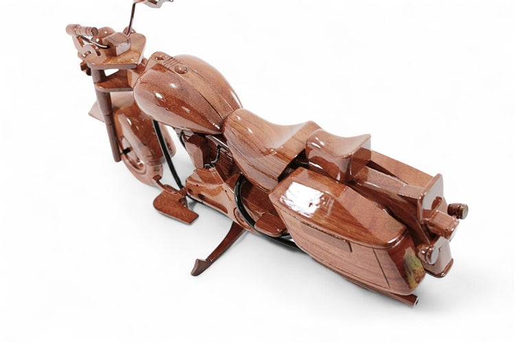 Complete with working kickstand, movable handlebars and wheels that roll, this scale model Harley Davidson Road King is a remarkable replica of the real thing. The exceptional detailing is further enhanced with multiple coats of polyurethane finish for high gloss and a deep wood grain. Dimensions: 13"L x 4"W x 7"H.