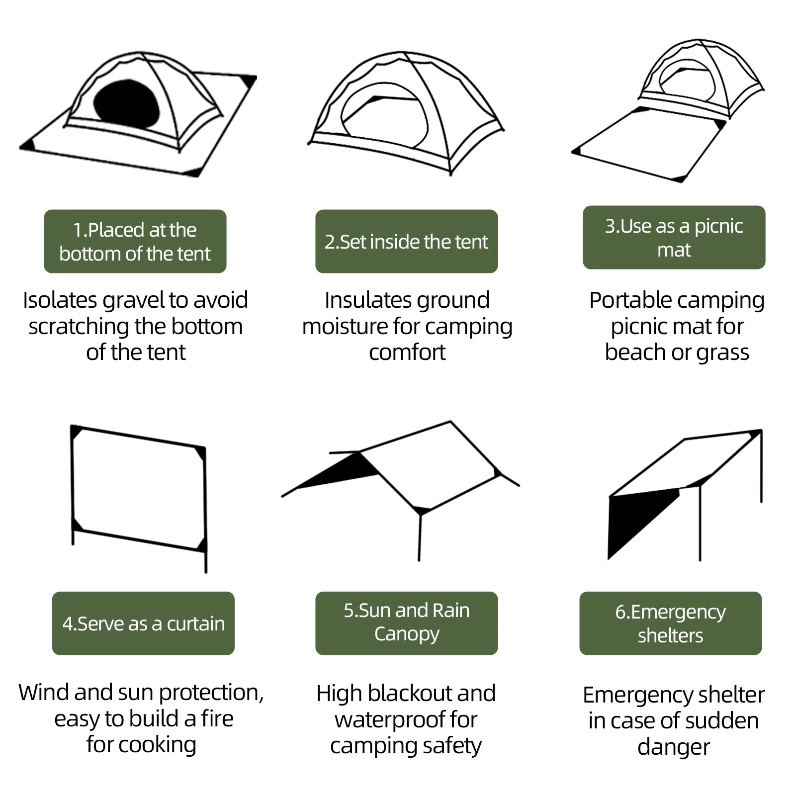 - Multi-Purpose Use: Perfect for picnics, beach trips, camping, hiking, and travel. It can also be used as a groundsheet under tents to block moisture and keep your setup dry.