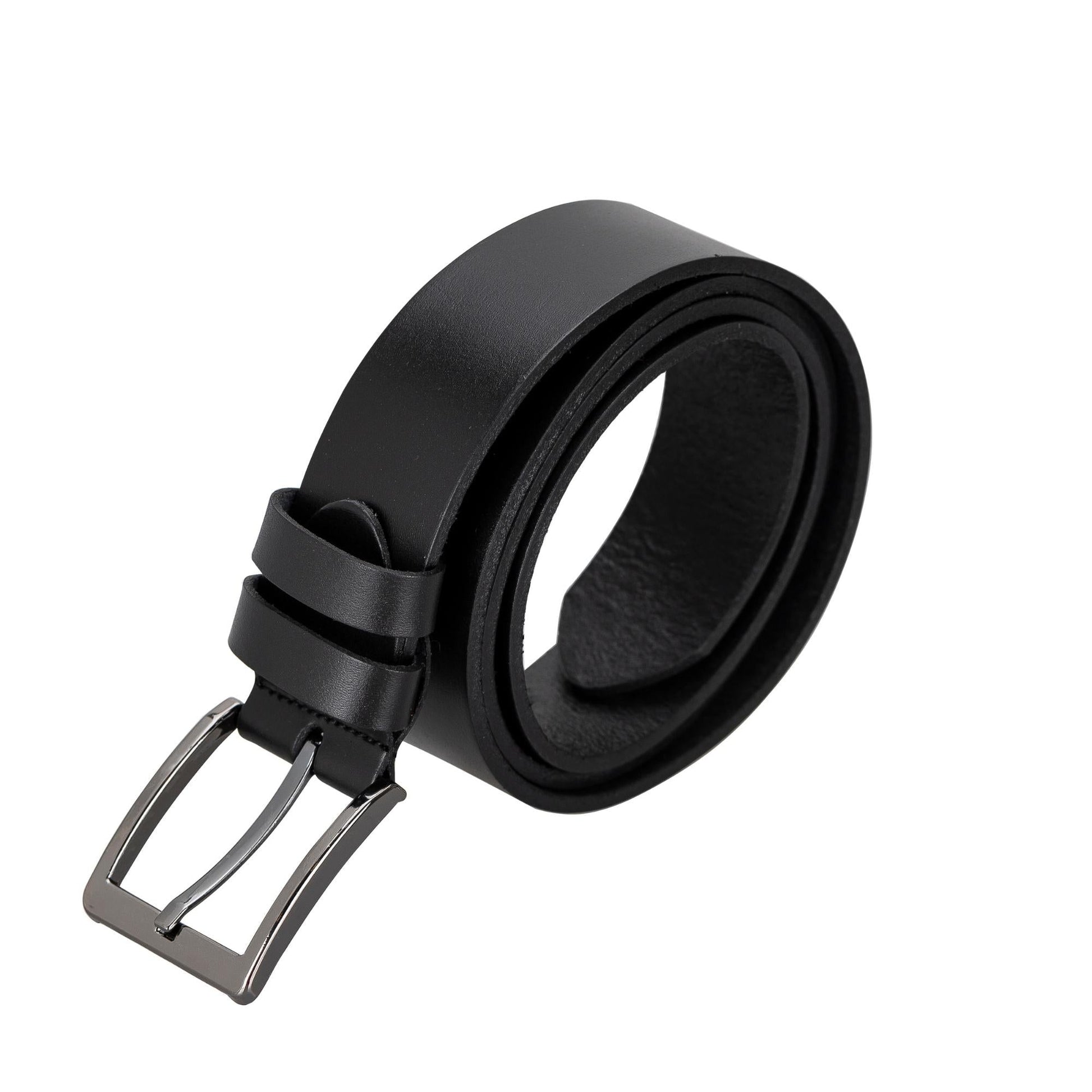 This men's handcrafted full-grain leather belt in basic black will elevate your look. Expertly made by leather artisans, this belt embodies classic style and robust resilience. Its all-full construction of full-grain leather, which screams authenticity and quality, will make you stand out from the crowd. Whether you're dressing up for a formal event or just want to add a little additional class to your everyday clothing, this leather belt would look amazing with everything.