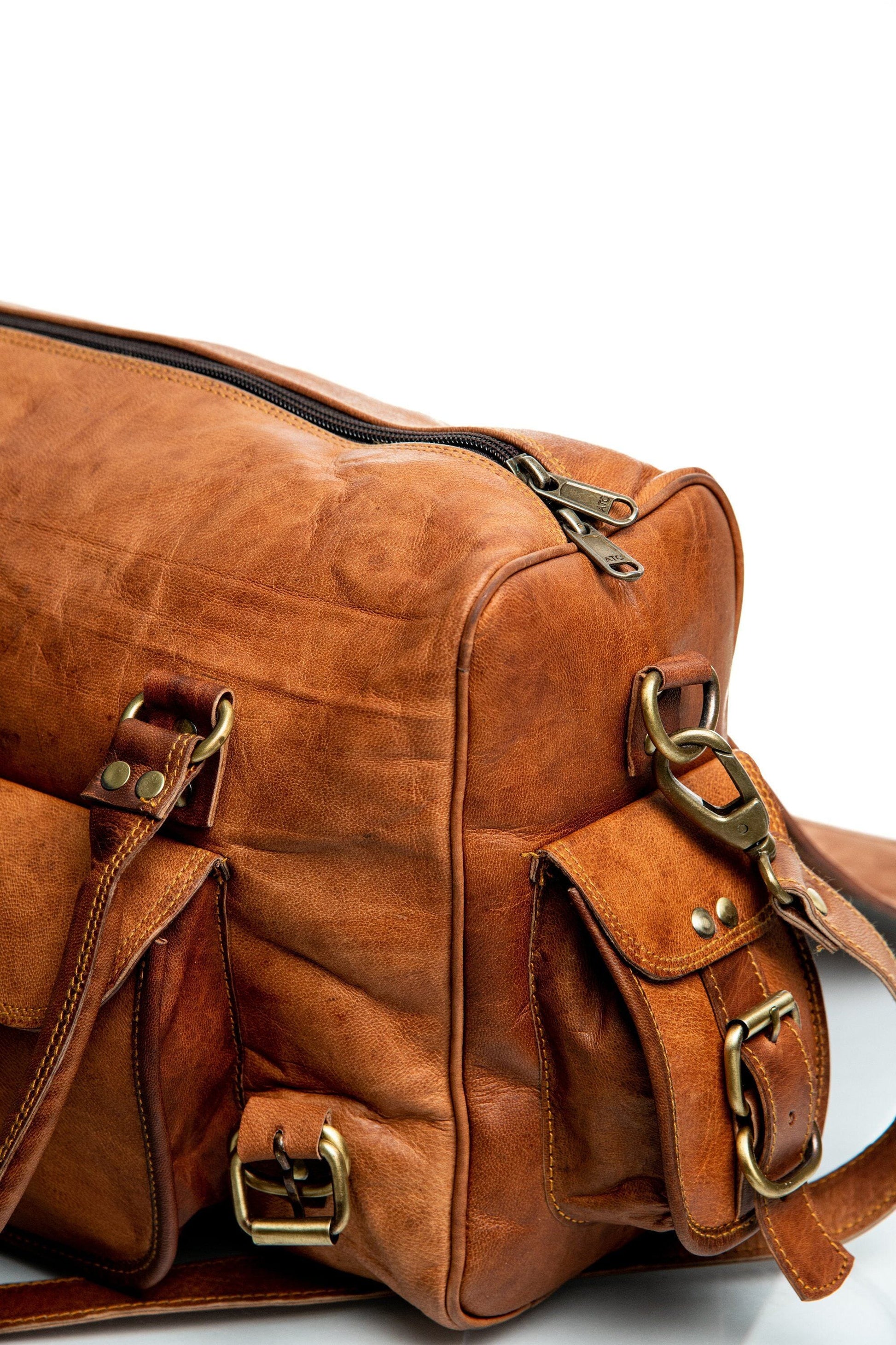 The super-stylish Walker leather unisex duffle bag is undoubtedly a trendsetter all year. This opulent, oblong weekender bag is made of the finest quality goat leather, accentuated with intricate detailing on the stitches. We offer excellent craftsmanship to ensure uniqueness and exclusivity. We are glad to let you know that all the procedures followed for tanning the skin are natural.
