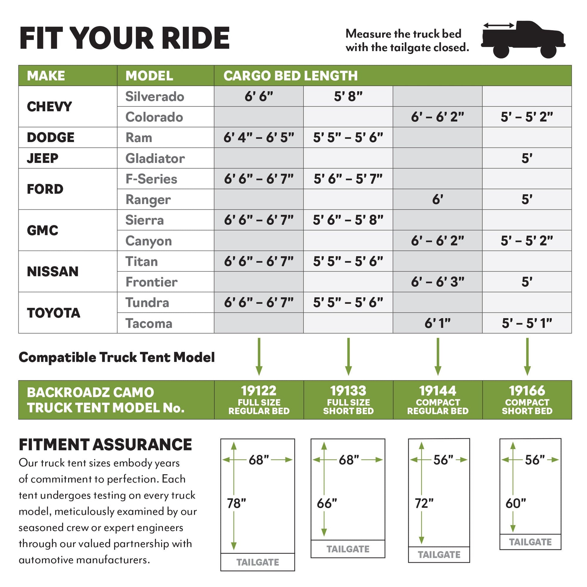 - Dimensions: Truck model dependent