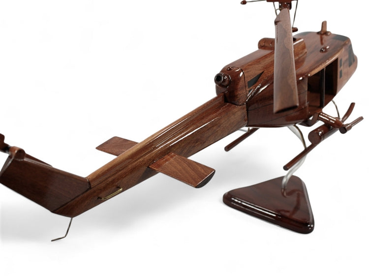 We use leftover wood from the furniture manufacturing industry. No trees are purposely cut for our wooden models. Our wooden desktop models are not always made to a specific scale but rather they are made so that you can easily fit and display them on your desk or bookcase. Our crafters are highly skilled artists that take great care in making our beautiful replicas to perfection. Due to color variations on the wood we can not guarantee that the color consistency will always be the same. We ship the models semi-assembled and some simple final assembly may be required. The wings for the airplanes and the blades for the helicopters will have to be plugged in but no glue is required. We guarantee our models and if for any reason you are not 100% happy with the wood model you receive let us know and we will send you a replacement right away.