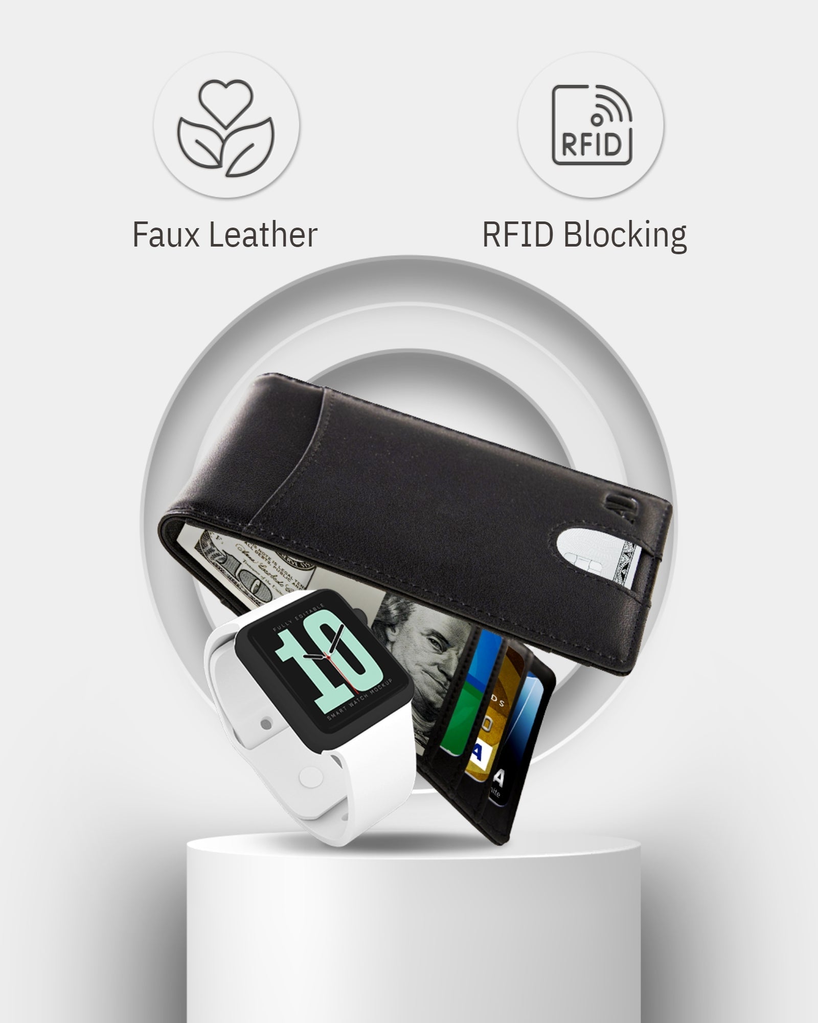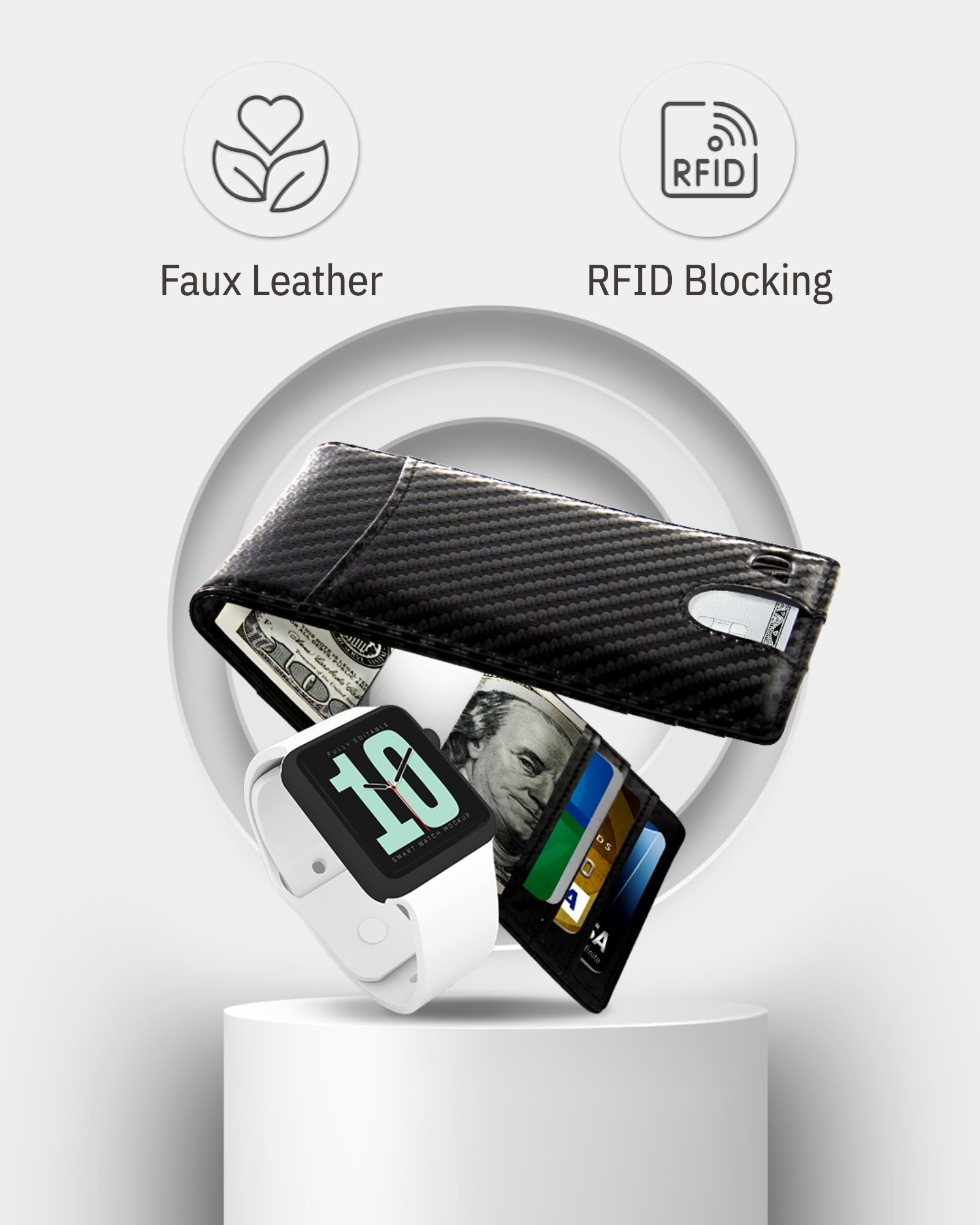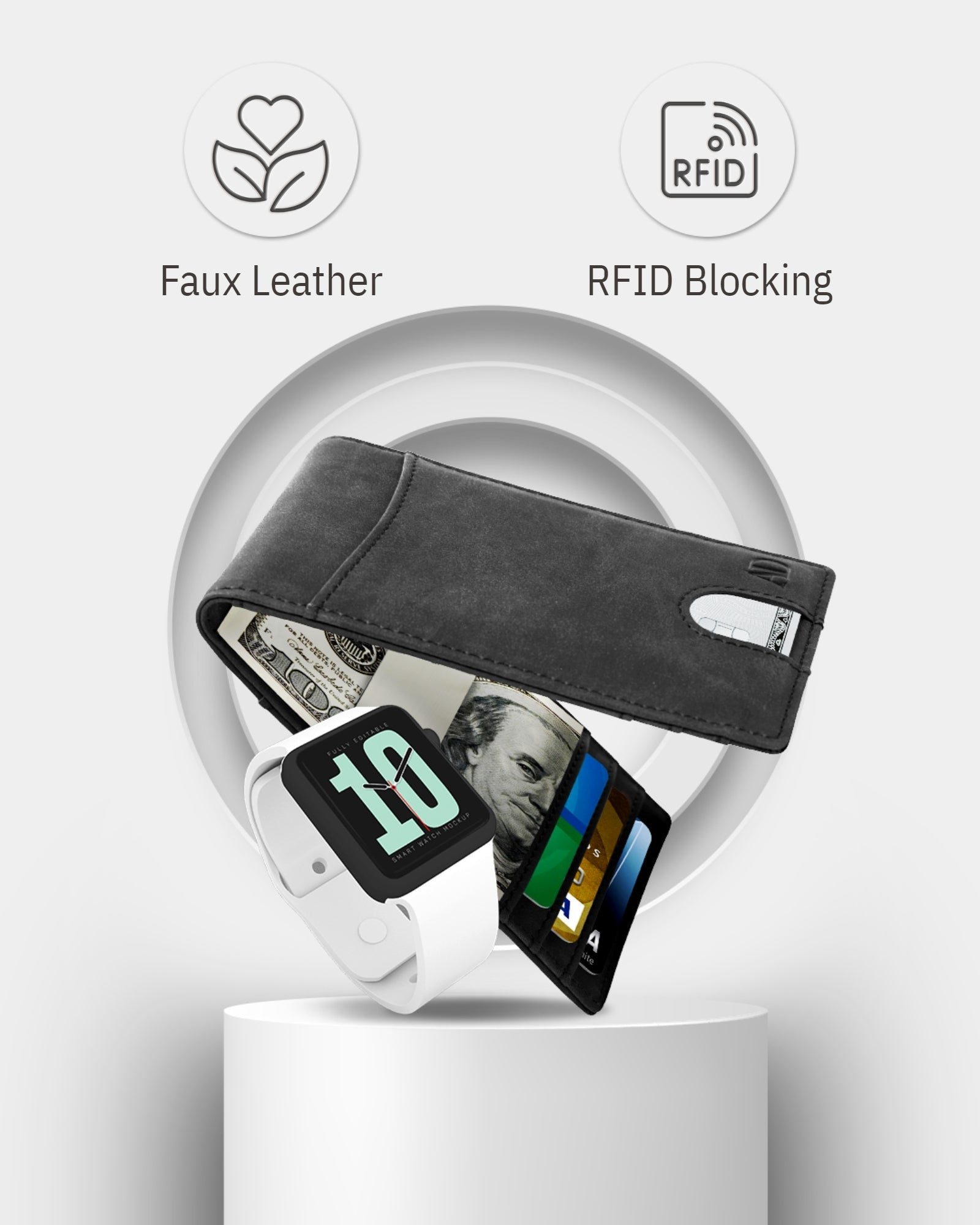 This Bifold Money Clip Wallet is made out of Vegan Faux Leather that is extremely soft and durable.