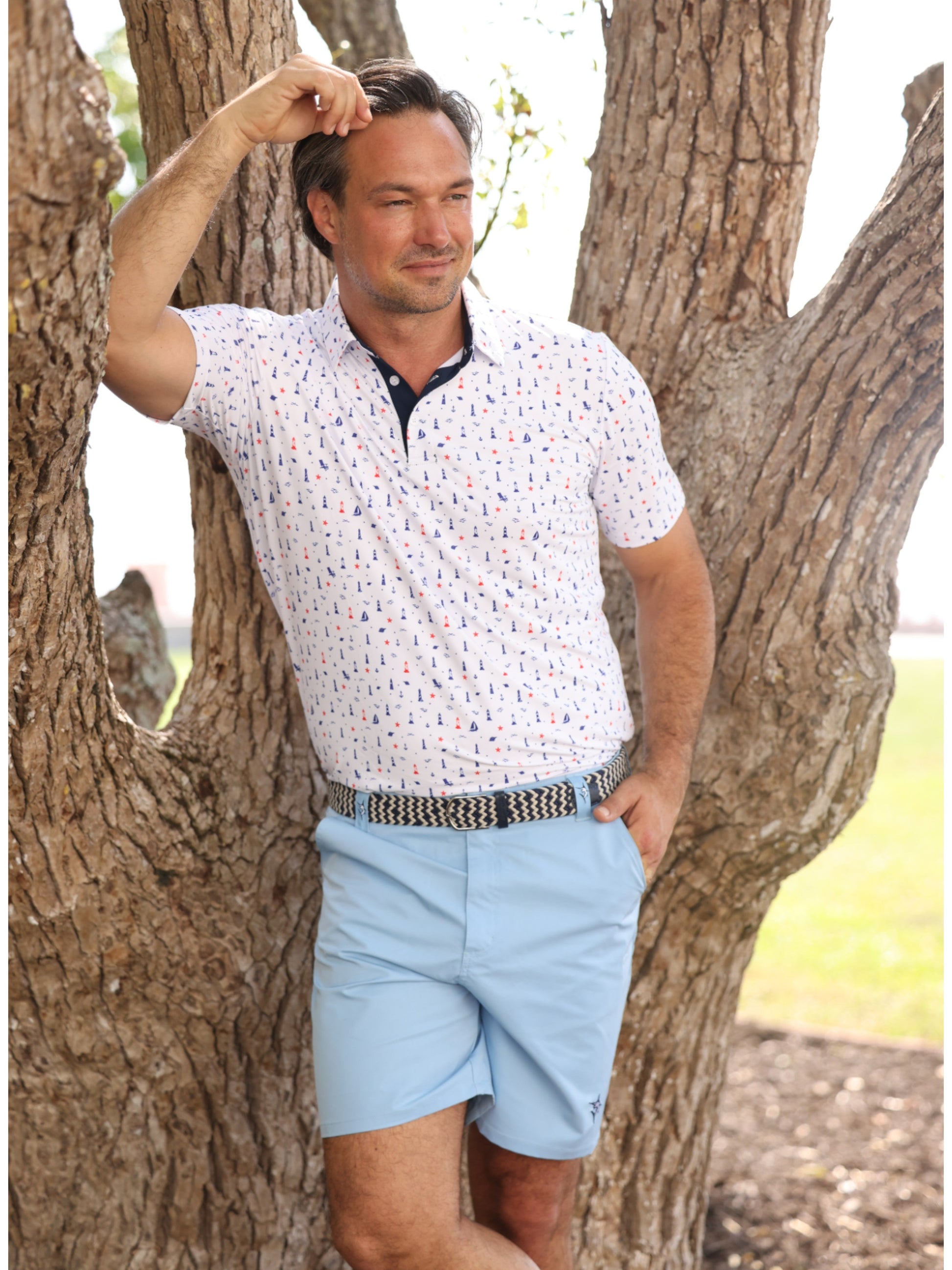 Our new braided belt features stretch woven webbed fabric with full grain leather. The added stretch in the webbing provides comfort and flexibility. This 2" wide belt is perfect for work, dinner, or the course!